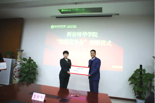 仪式上,西安培华学院理事长姜波对两位校友表示热烈欢迎,他表示,奖学金不在于多少,在于其沉甸甸的意义。一个拥有大爱的校友,让青年人满怀理想与抱负,在未来不仅能自食其力,并且能够造福身边的人,造福我们的国家。培华人在历史的长河上,前赴后继、乘风破浪、迎难而上,这是培华精神在校友身上的真实写照。
