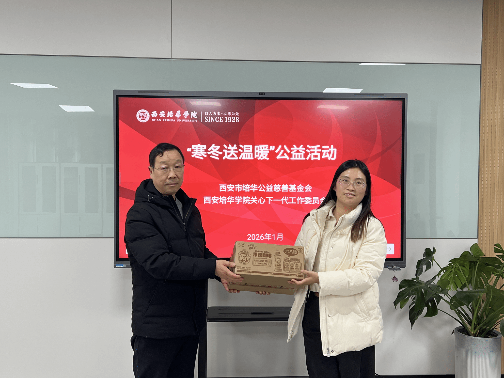 岁末寒冬,温情涌动。1月9日,西安市培华公益慈善基金会在西安国际医学中心正式接收来自陕西省阳光慈善基金会的爱心捐赠,物资包括50箱旺旺德邦咖啡与50箱旺旺荞麦面。这份冬日暖意的传递,离不开多方公益力量的携手助力——此次捐赠由陕西千善基金会积极促成,旺旺集团西安分公司倾情捐赠,陕西省阳光慈善基金会作为公益枢纽发起统筹,通过科学精准的公益网络定向帮扶十四家一线公益服务机构,惠及各类困难群体。西安市培华公益慈善基金会作为专注助力人才培养的教育类基金会,有幸成为受助单位,为寒假留校实习学子争取到这份暖心关怀。